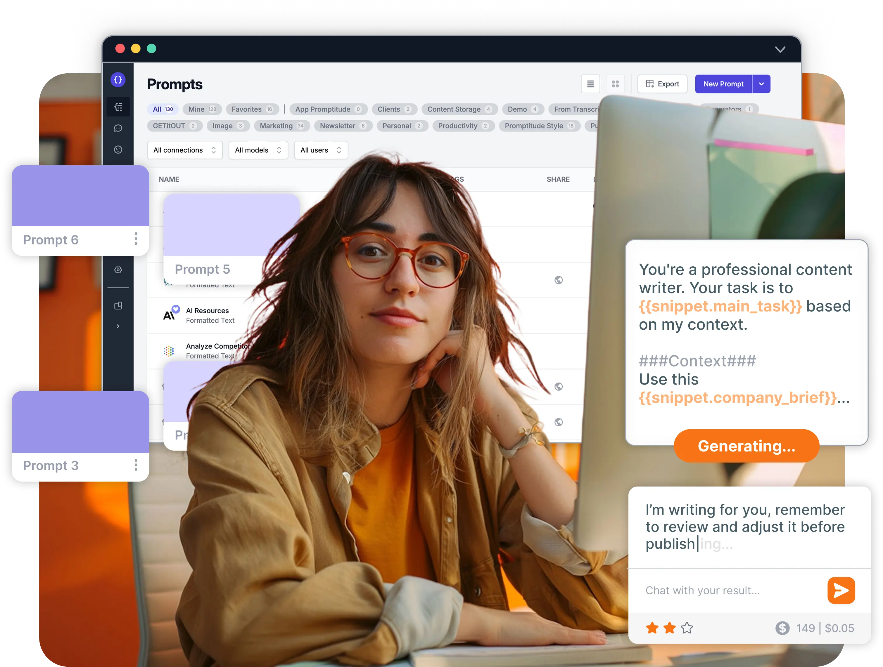 Learn more >Stop wasting precious development time: With Promptitude, anyone can create, test, and manage powerful GPT prompts using a beautiful interface.